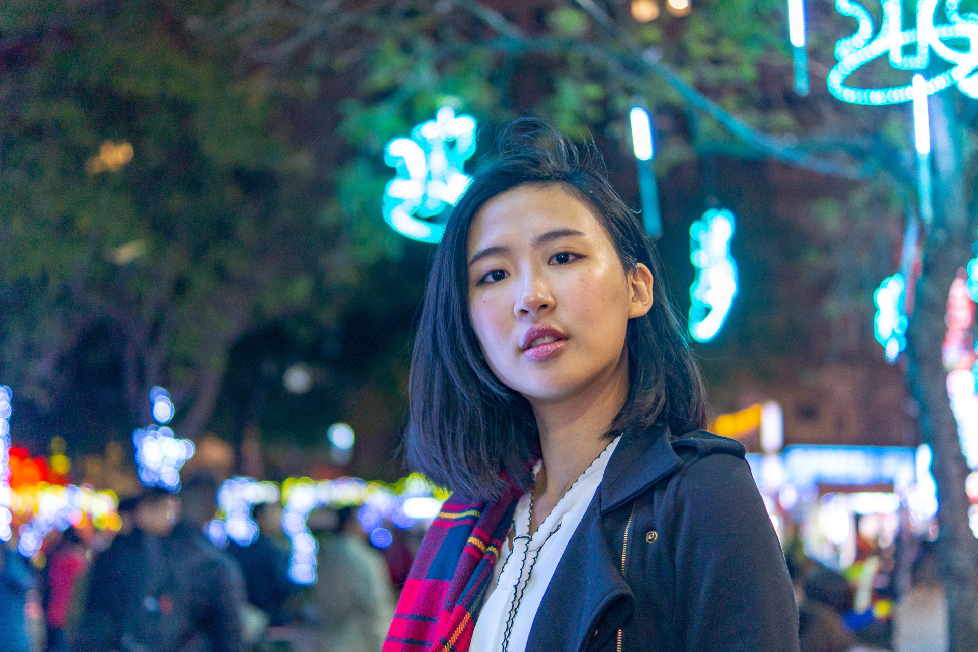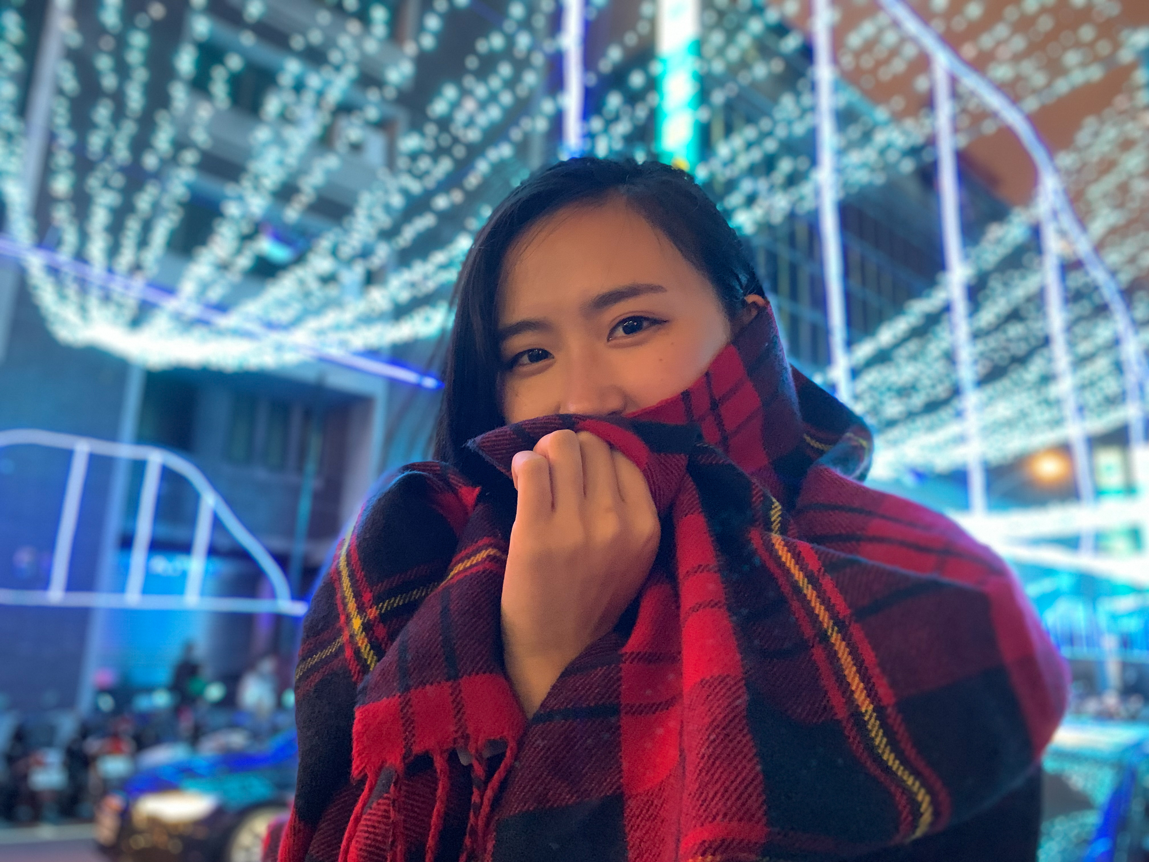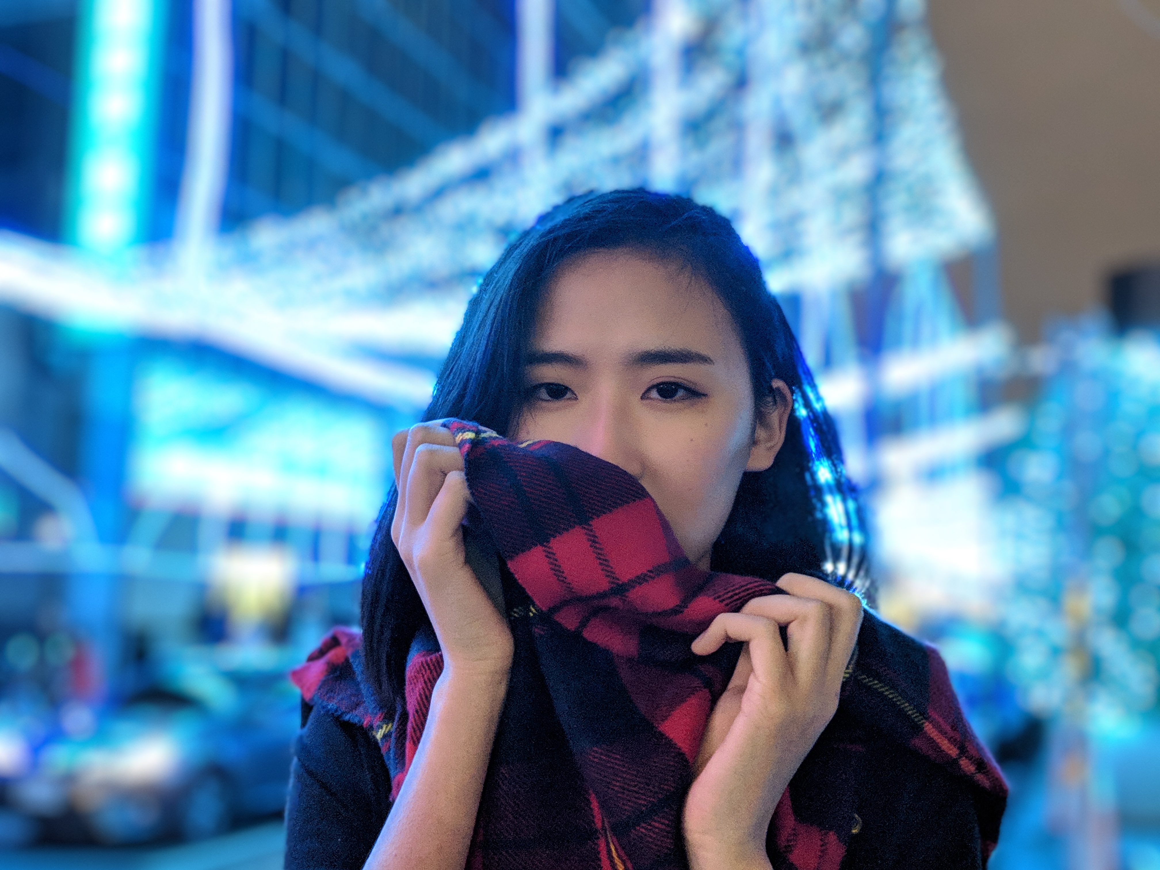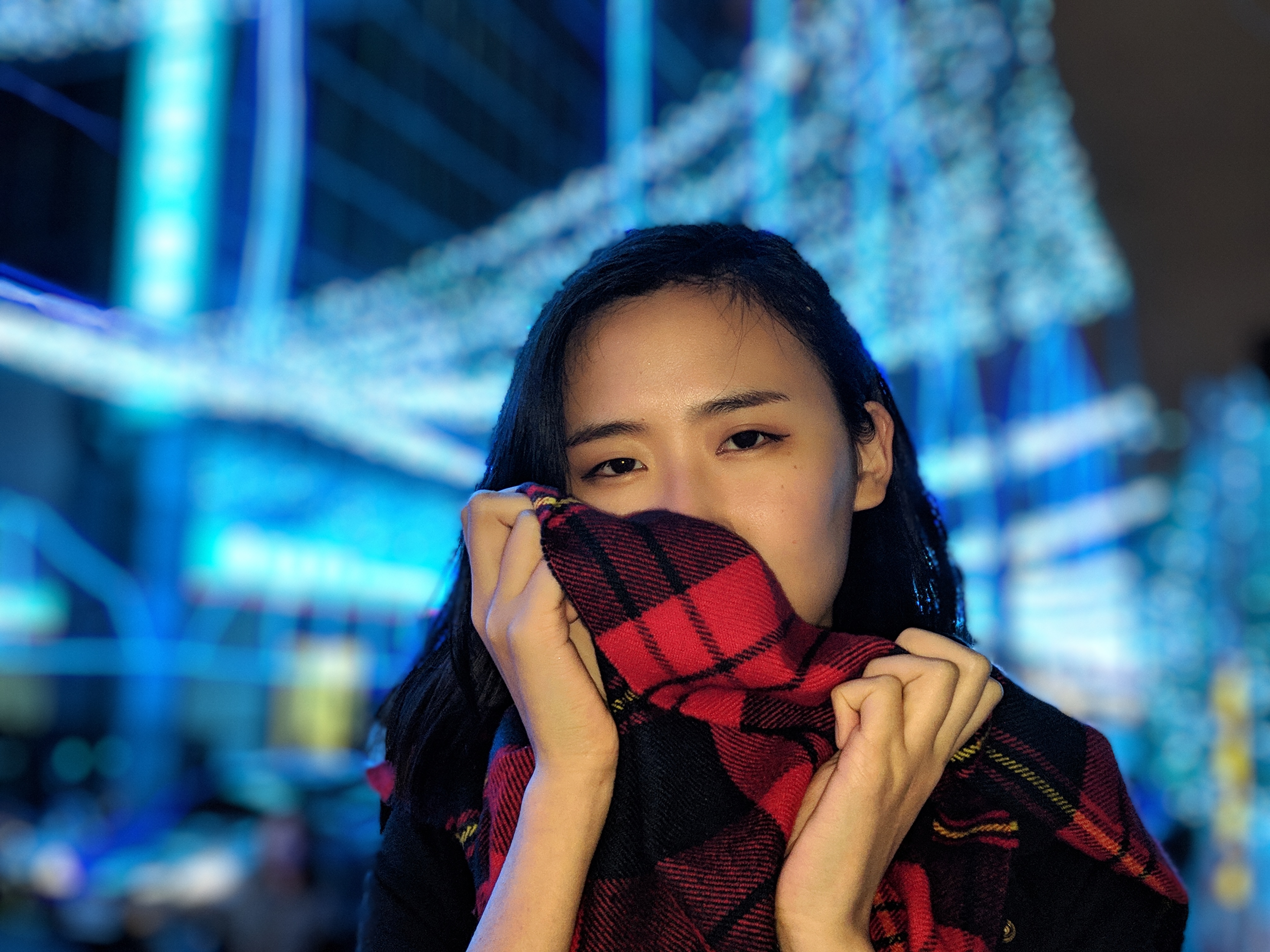 在夜拍中,由於更考驗手機高感光性能,這時的美顏已經沒有足夠的細節來讓人臉看起來自然,夜景人像的臉看起來比芝麻糊還糊--但比起雜訊、燥點,油畫般的美顏其實在小圖上看起來也沒這麼差。