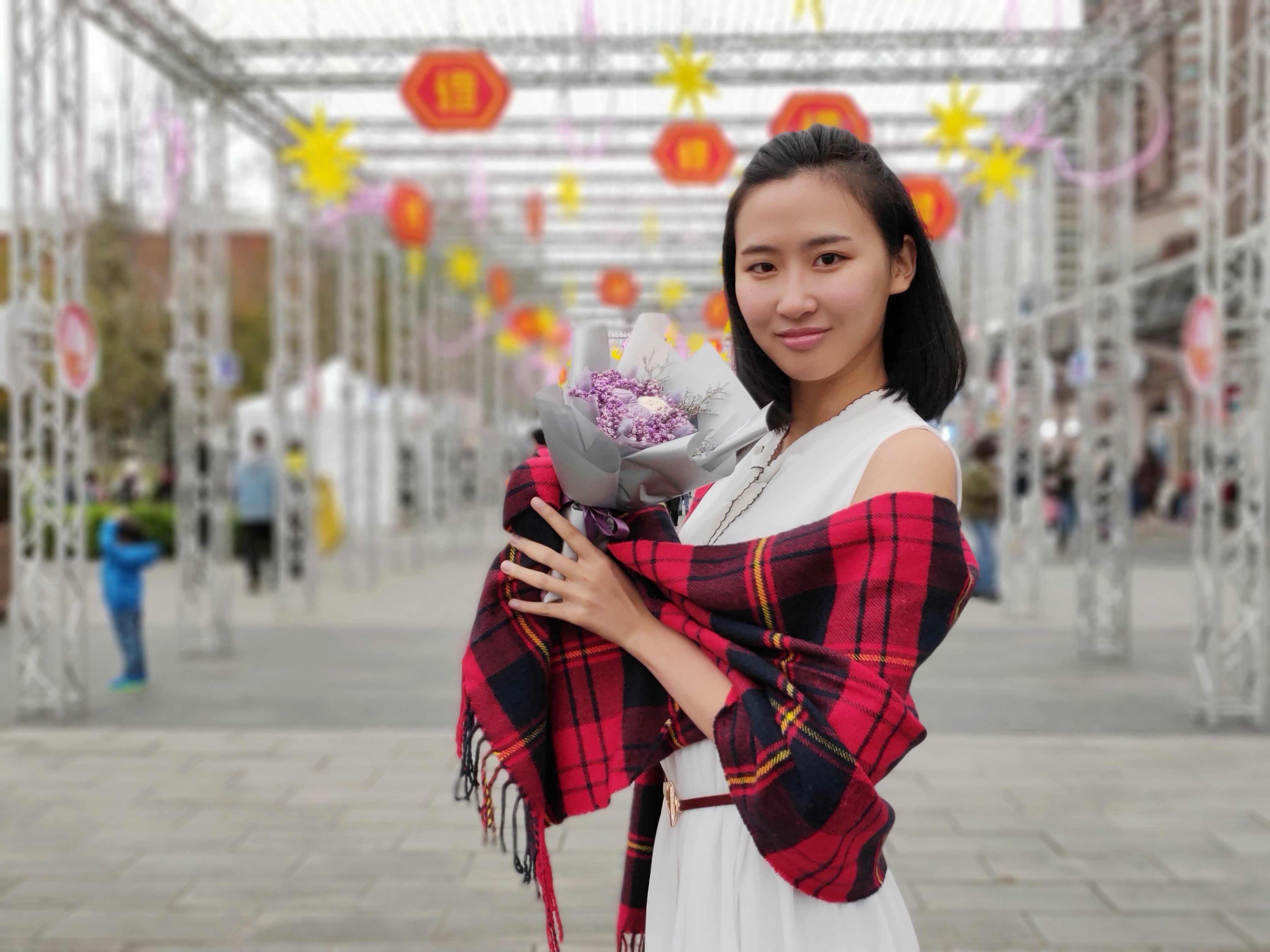但由於算法的極限,Pixel 3 在處理自然景物、物體的邊緣上就沒有人物的那麼出色,可以看到在樹葉與捧花上,邊緣都有了誤判的情況。